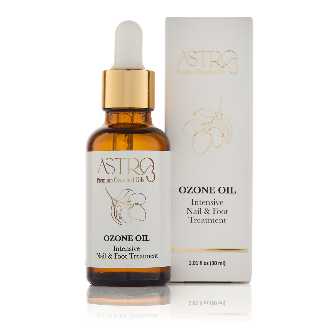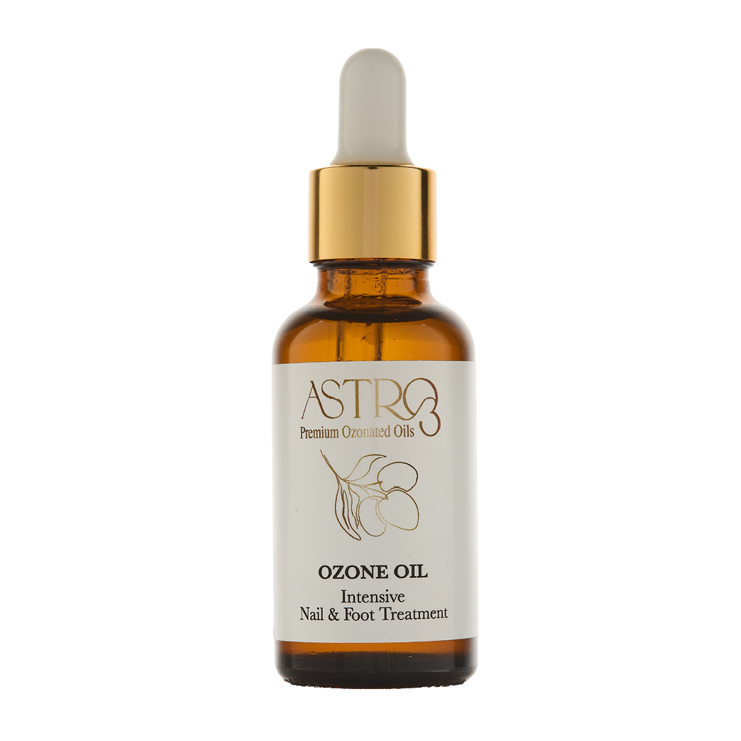 שמן AstrO³ מבוסס על שמן זית טהור, אשר עבר תהליך ייחודי של העשרה באוזון (חמצן פעיל), במטרה להעניק טיפול אינטנסיבי לציפורניים ולעור כפות הרגליים.